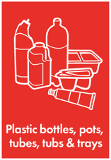- All plastic bottles, pots, tubs and trays
