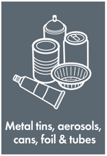 Metal tins, aerosols, cans, foil and tubes